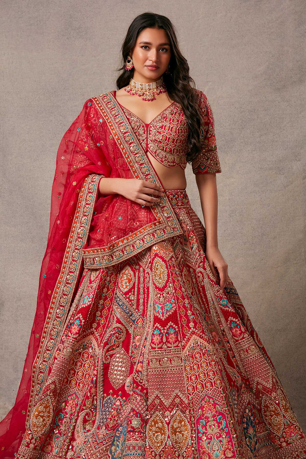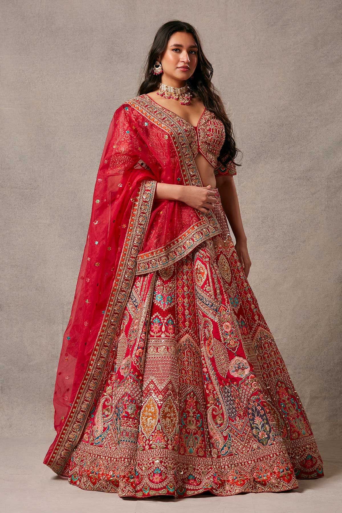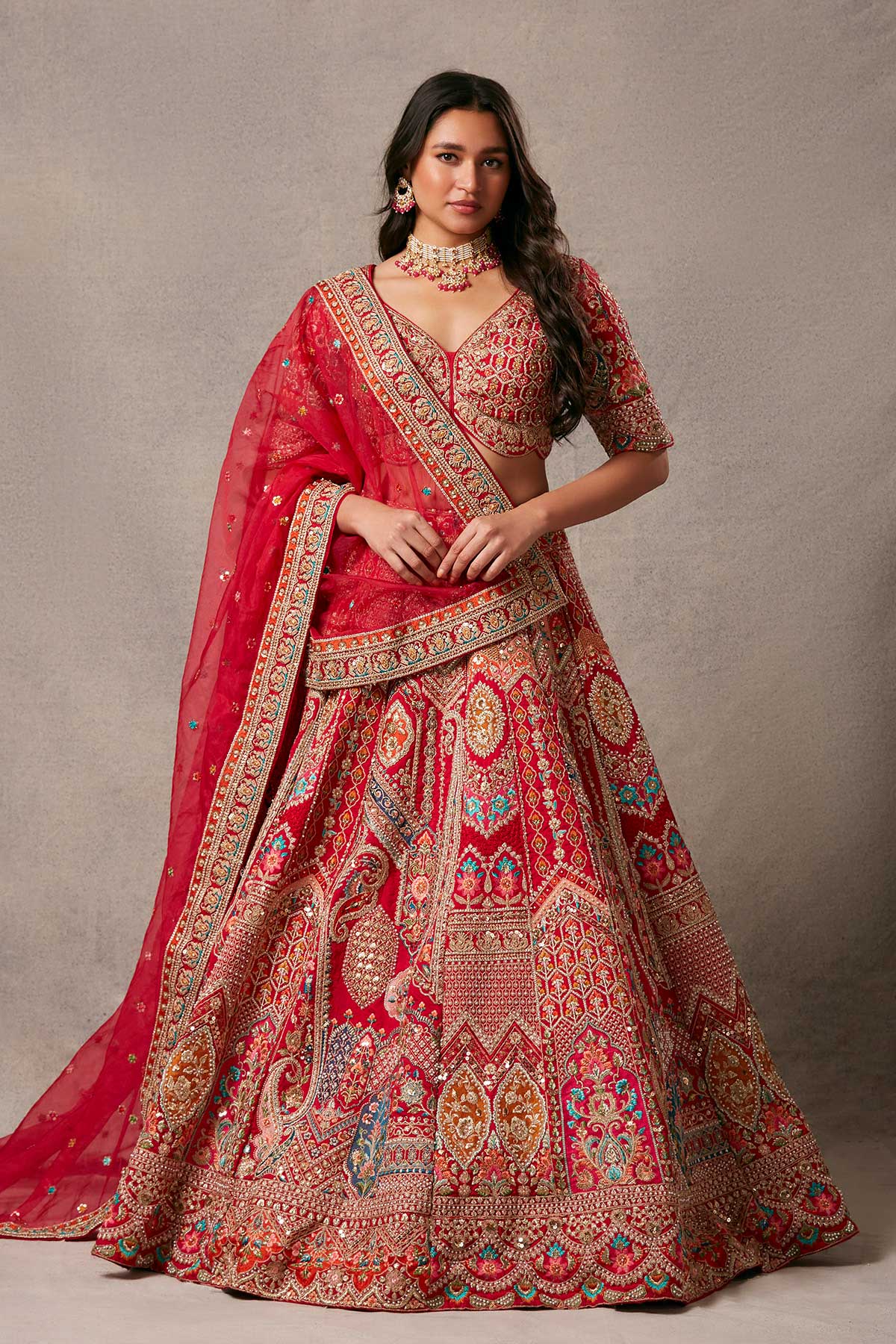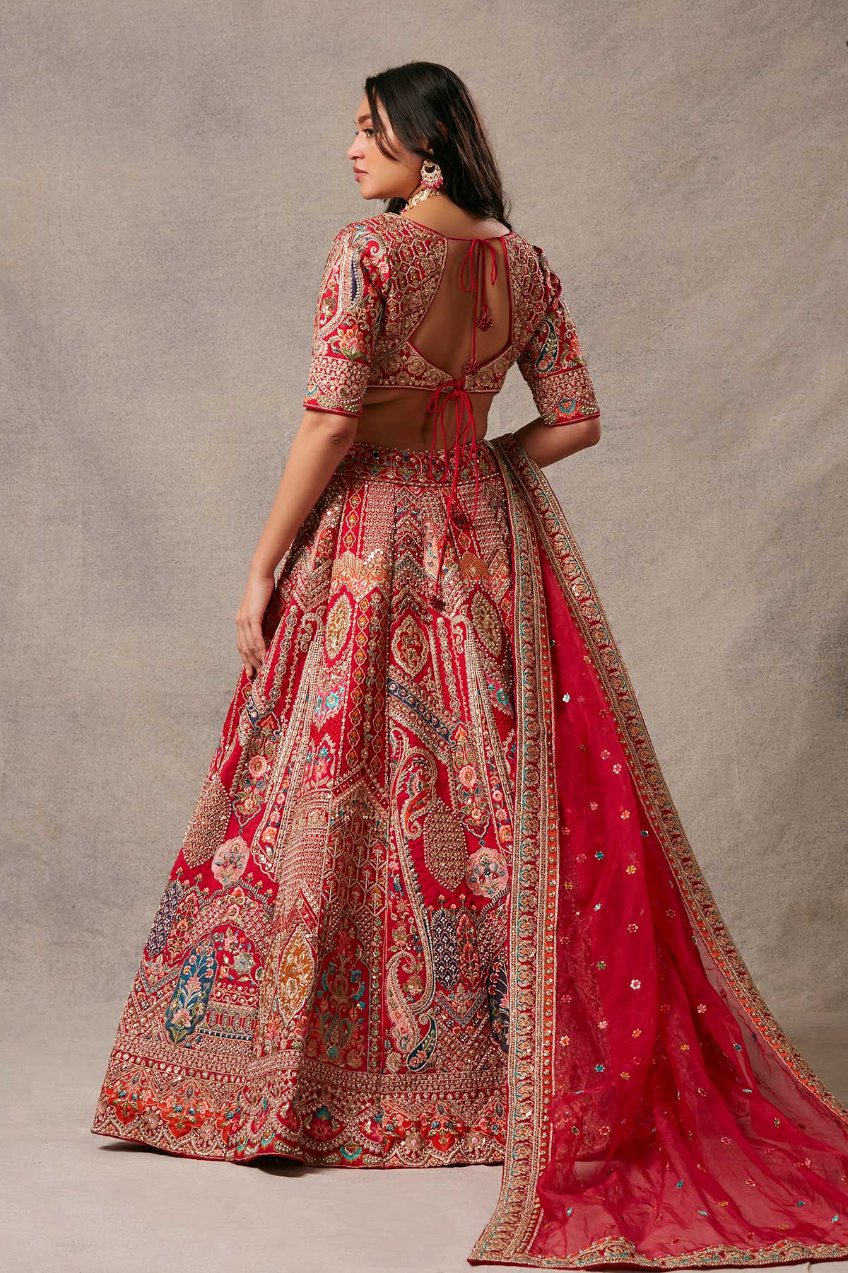 Crafted from exquisite raw silk, this piece features a sumptuous butter crepe lining, adorned with intricate Dori multi reshume tikki kardana and a blend of hand and machine embellishments, showcasing a harmonious fusion of artistry and elegance.