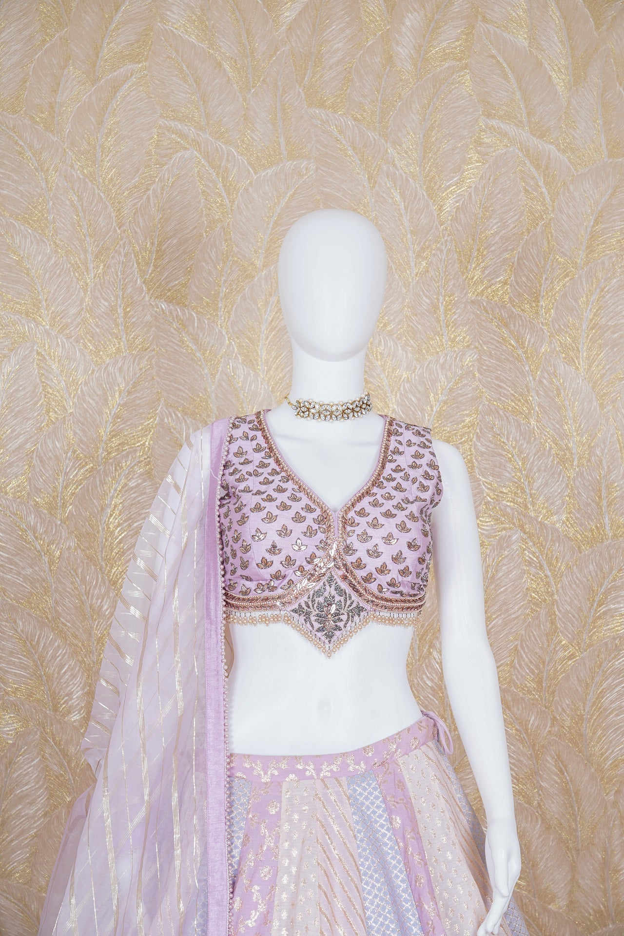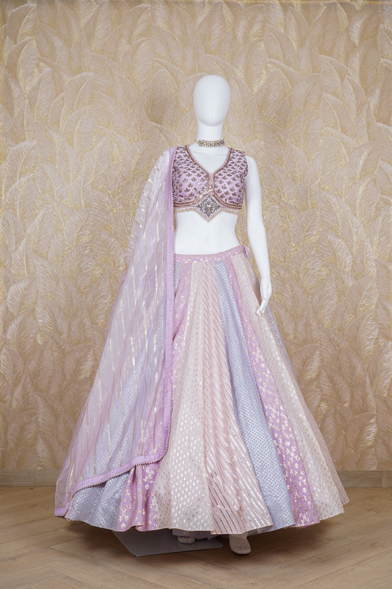 Bella Lilac Multi Chanderi Brocade Lehenga Set